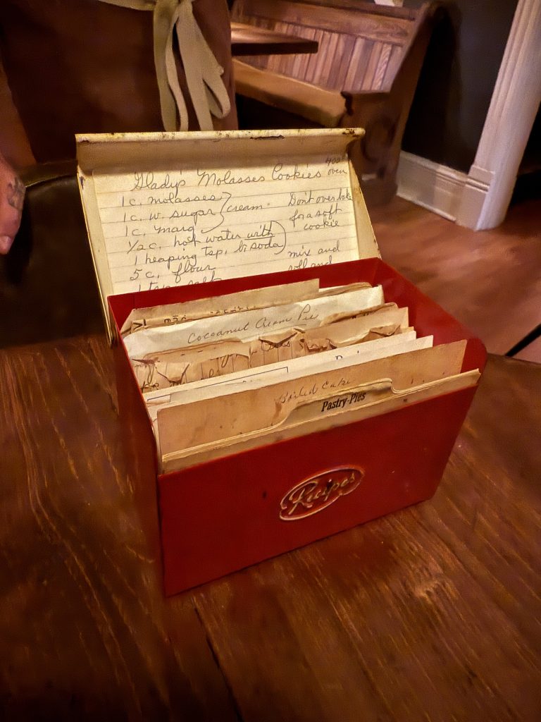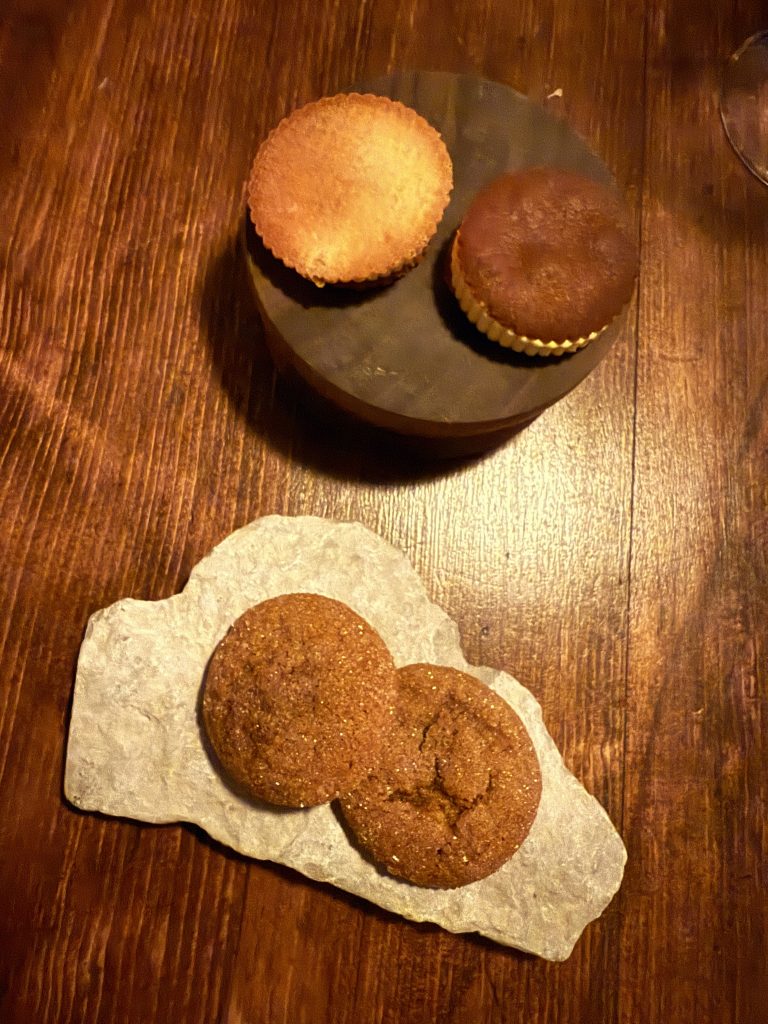 And just when you think the evening is ending, Joel returns with a red tin recipe box, worn and hand-labelled. From it, he retrieves a card in his great grandmother’s looping script — the source of the night’s final touch: a homemade molasses cookie to close the meal. It’s buttery, spiced, perfectly chewy.