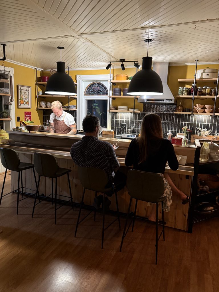 If you can, book the chef’s counter — the prime seats facing the open kitchen. They’re the first to go, and for good reason. From there, you can watch Joel move with quiet precision. The intimacy of those seats blurs the line between guest and participant; you feel the rhythm of the kitchen, the warmth of the fire, and the intention behind every movement.