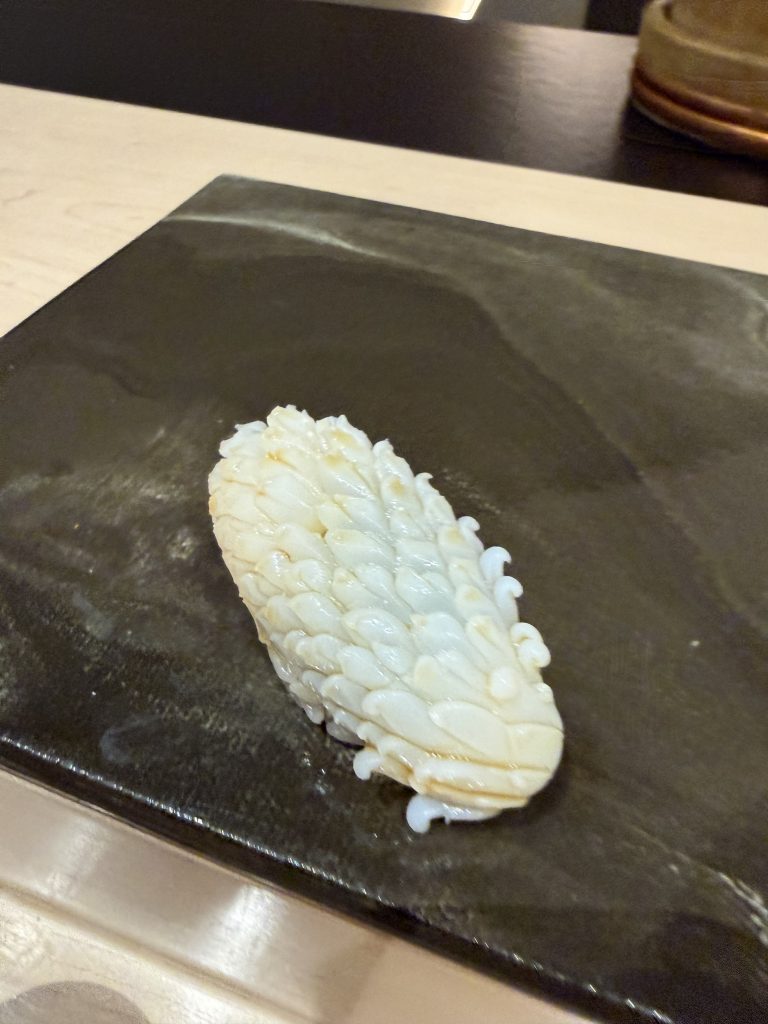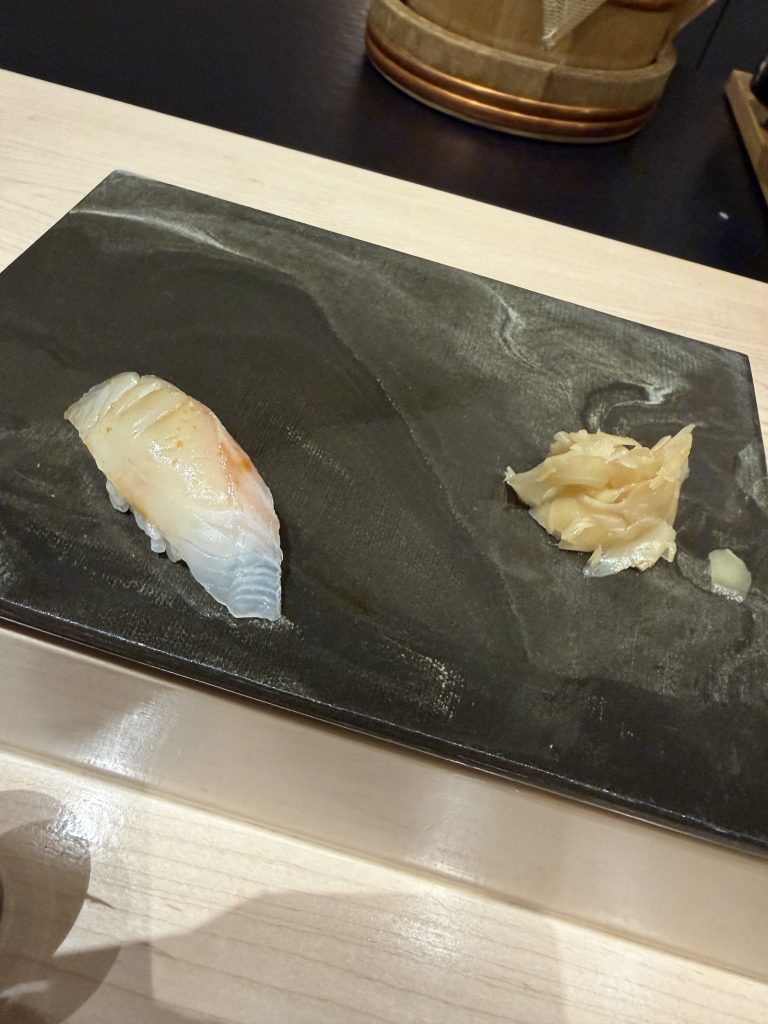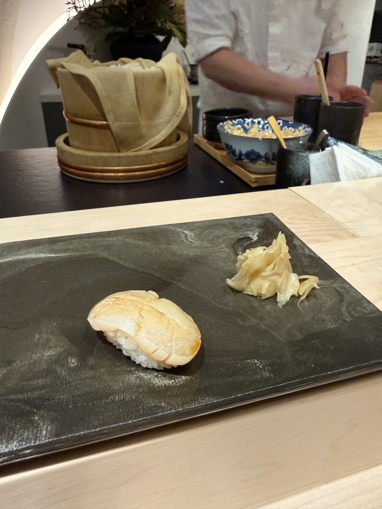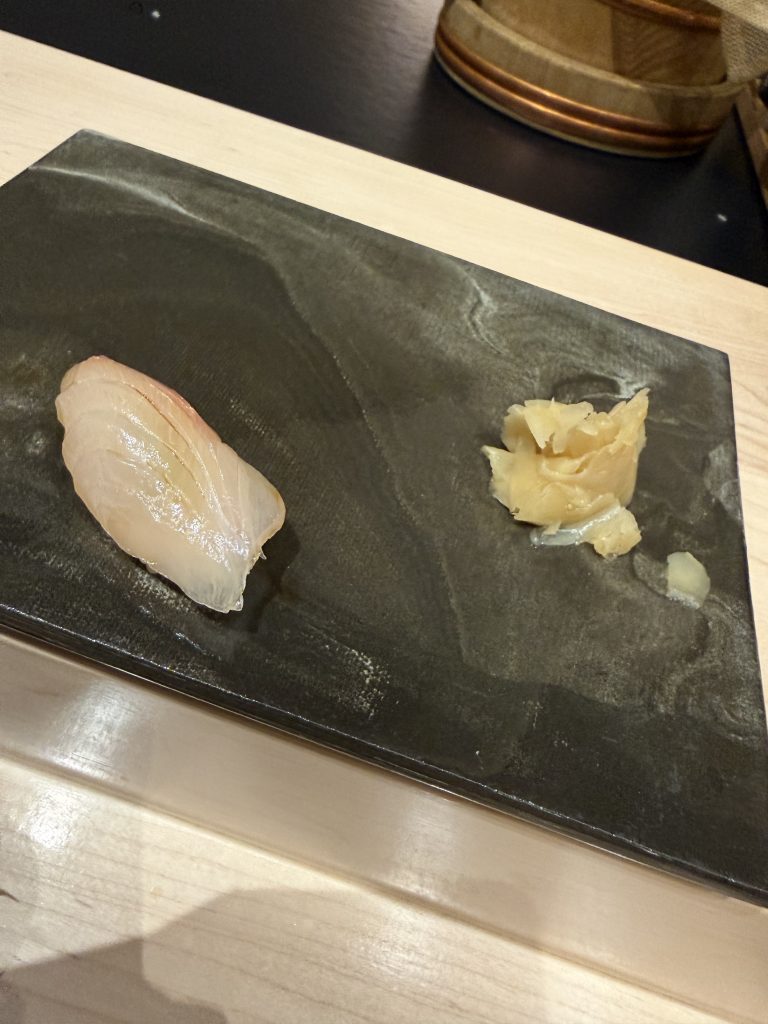 The opening scallop was pristine and faintly sweet, a quiet assertion of freshness. Sea bream with yuzu followed—clean, citrus-bright, and sharpening without aggression. Striped jack fish appeared more than once throughout the meal, subtly reinterpreted each time, as if the chef were making a case for repetition done properly. Amber jack brought structure and depth, firm yet yielding.