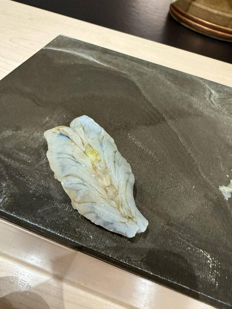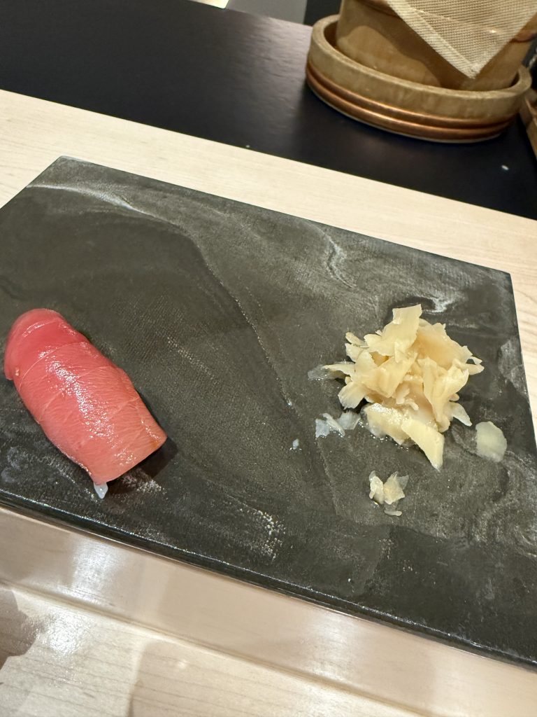 The cuttlefish, meticulously scored, avoided the usual chewiness, landing instead in that narrow zone between technique and elegance. Then came the tunas: light fatty tuna, silky and composed; medium fatty tuna, richer but disciplined, stopping just short of indulgence. Each piece was brushed with nikiri so precise it felt more like punctuation than seasoning.