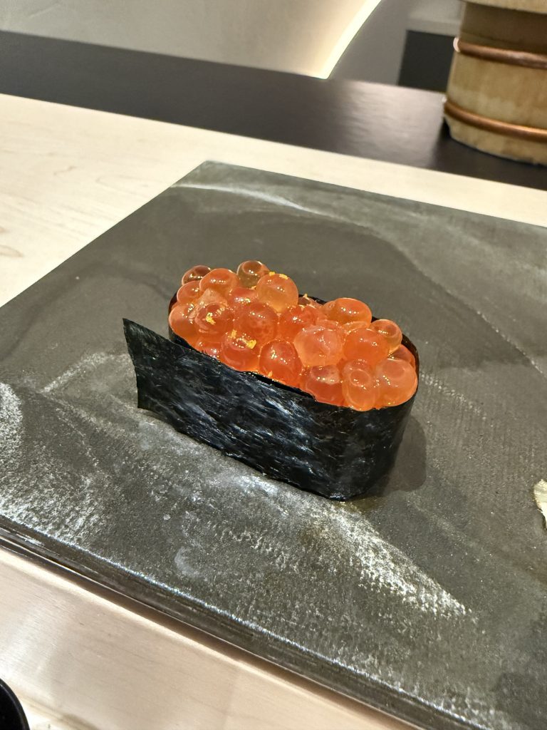 Salmon, often treated as filler elsewhere, was lush and clean, handled with respect. The sequence ended with salmon roe, glossy and saline, each bite delivering a brief, satisfying pop.