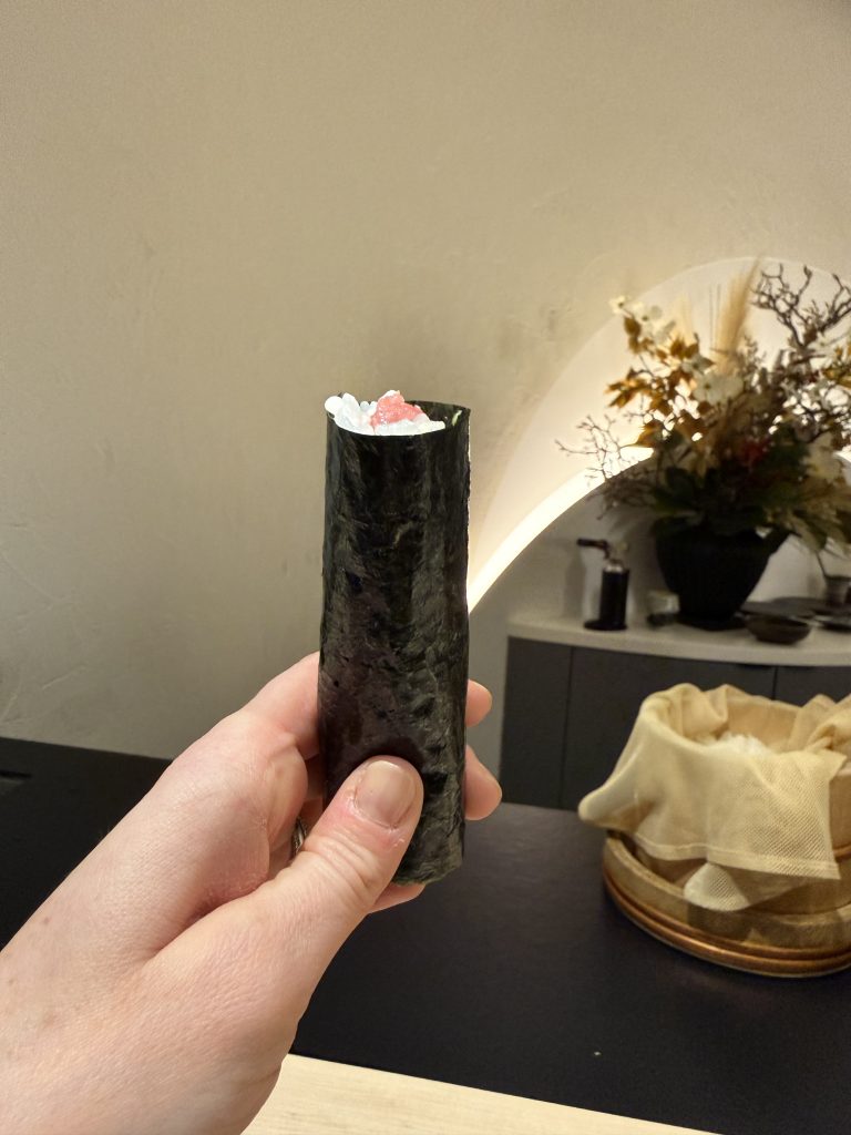 The supporting elements mattered. The miso soup was deeply umami and grounding, while the tuna hand roll—warm rice, crisp nori, impeccably ground tuna—was clearly meant to be eaten immediately, before the moment slipped away. At Sushi Yugen, moments move quickly.