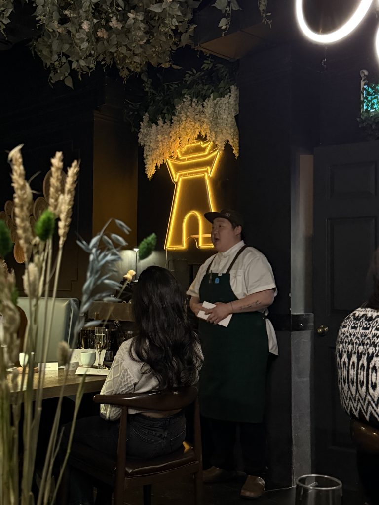 Chin doesn’t hide in the kitchen. Several times throughout the evening, she steps into the room to introduce a dish, explain an idea, or tell a short story. These moments never feel rehearsed. They feel conversational, sometimes slightly rambling, occasionally funny, always sincere. If many tasting menus try to impress you with technical wizardry, Yan tries something riskier: it asks you to care.
